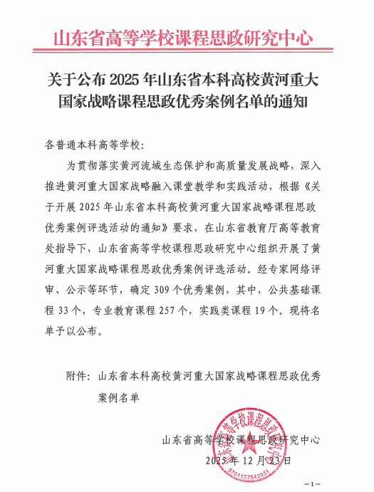 | 近日,山东省高等学校课程思政研究中心正式公布了2025年山东... |