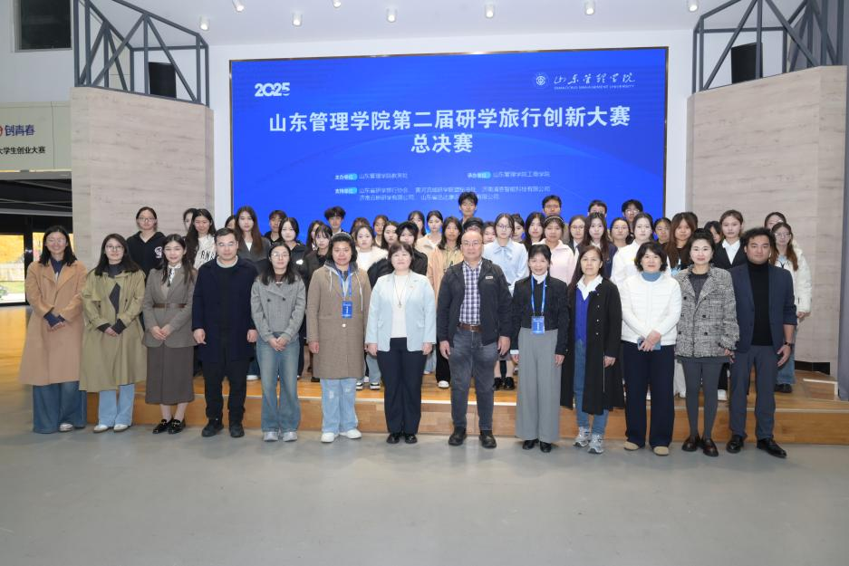 11月8日,山东管理学院第二届研学旅行创新大赛决赛在创新创业中心举行。此次比赛作为2025年全国旅游管理与服务教育专业建设联盟年会暨“十五五”旅游管理学科创新发展研讨会分会场,特邀旅游部旅游管理类专业教学指导委员会委员陈非、三明学院经济与管理学院芦惠、武汉商学院旅游管理学院田野及工商学院教师杨欣、李小娟、王瑞君担任评委,工商学院副院长张春翠出席比赛并致辞。